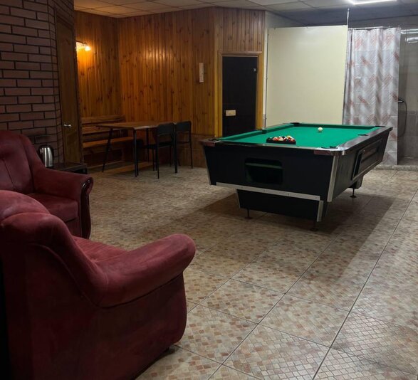 We have created all the conditions for a cheerful company and family to have a rest here. Spacious living room with billiards, large steam room and of course only the best service and comfort. Here no one will bother you and you can easily take a break from the bustling city, enjoying a sauna vacation to your heart's content.